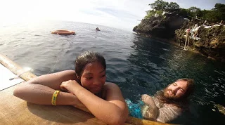 It was a day that rivalled perfection. We head out to Ariel's point, an intoxicating island known for its cliff jumping, gathering visitors to let go of fear and jump off its 15 metre peak platform. This place only exists to relieve you of your apprehension and rediscover your faith in fun and adventure. Starting out in the morning we leave Boracay, following one another into the water holding our possessions as high into the air as possible as we clamber onto our wooden vessel which resembles the Asian Noah's ark.