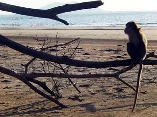 Sitting in the beach hut writing, reading and taking it all in with some time to spare. Watching the waves of south china sea lap onto the beach in front of me the branches of the trees framing my view, the breeze sweeps through and matt corby playing the background it is all quite peaceful, enjoying the slower moments of life, until one of the pesky macaques strolls past and I grab onto my monkey deterring stick for protection.