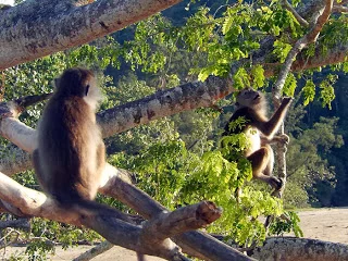 The animals walk alongside us here at Bako, wildboars pottering along the beach, long-tailed macaques, proboscis monkeys and silver languors frequently looking on at what the humans are up to.