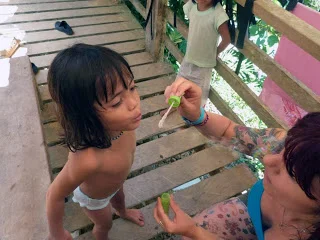At night I've never experienced such darkness, the only thing lighting up our sky are the sparse low lighting bulbs which merely dot the longhouse, instead as it should the night sky is clear and the stars so bright they do shine like diamonds taking their place as the jewels of the night amongst the darkness of night that blankets us. The generator and electricity run from 6PM - 12AM and once the lights are off you cannot see your own hand in front of your face. It's a fun sensation, although surreal beginning to believe you're blind.